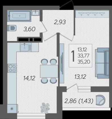 Продается однокомнатная новостройка, 35.2 кв.м., 13/16 эт