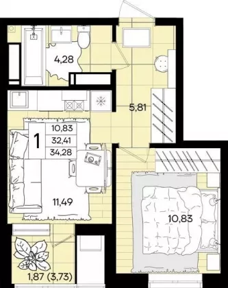Продается однокомнатная новостройка, 35.28 кв.м., 10/18 эт