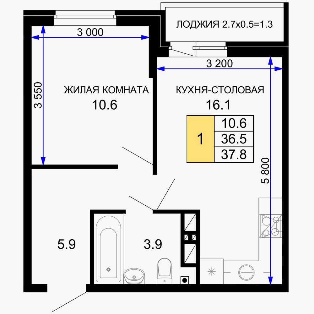 Продается однокомнатная новостройка, 37.8 кв.м., 2/16 эт