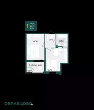 Продается однокомнатная новостройка, 45.9 кв.м., 18/21 эт