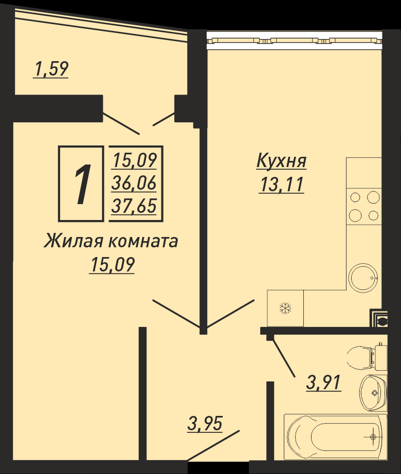 Продается однокомнатная новостройка, 37.65 кв.м., 16/16 эт