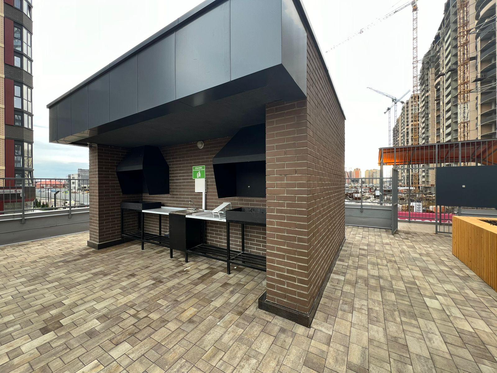 Часть домов будут иметь уникальную конструкцию двора в формате стилобата, на котором размещаются многофункциональная площадка для игры в футбол, баскетбол, волейбол, воркаут зона, столы для настольного тенниса, современные площадки для детей, ландшафтный дизайн, зона для творчества и зона барбекю с беседками для пикника с точками для мытья посуды и рук. Во дворах доступен Wi-Fi и зоны для зарядки гаджетов. Размещены сан. узлы.