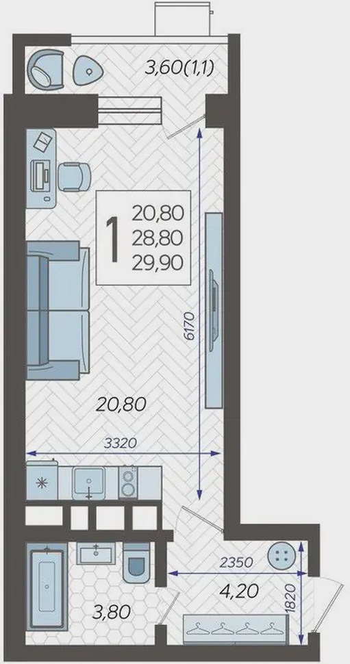 Продается 2-х комн. новостройка, 29.9 кв.м., 6/12 эт