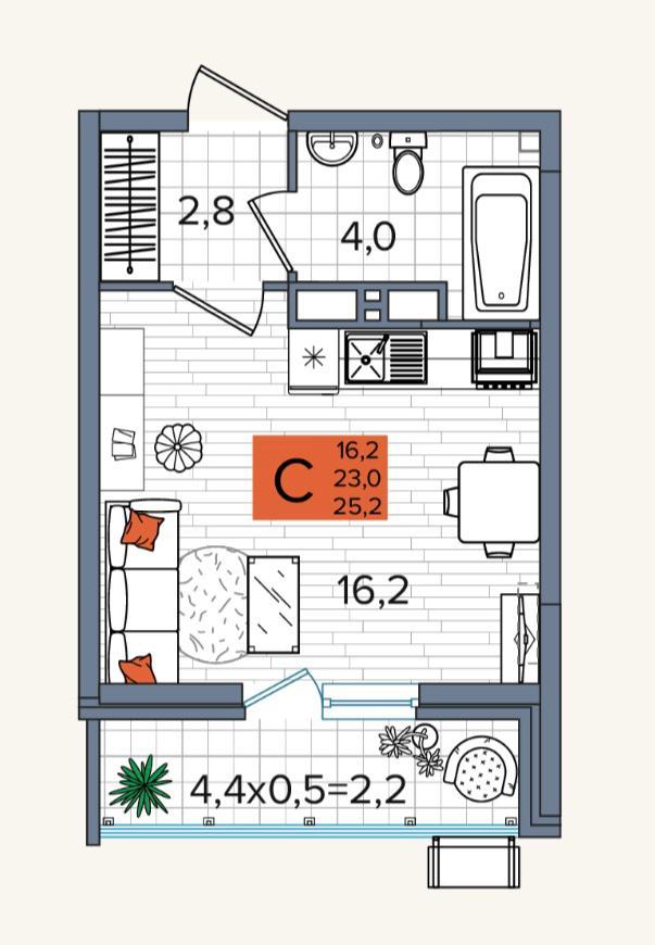 | Площадь, кв.м. | 25.2 |