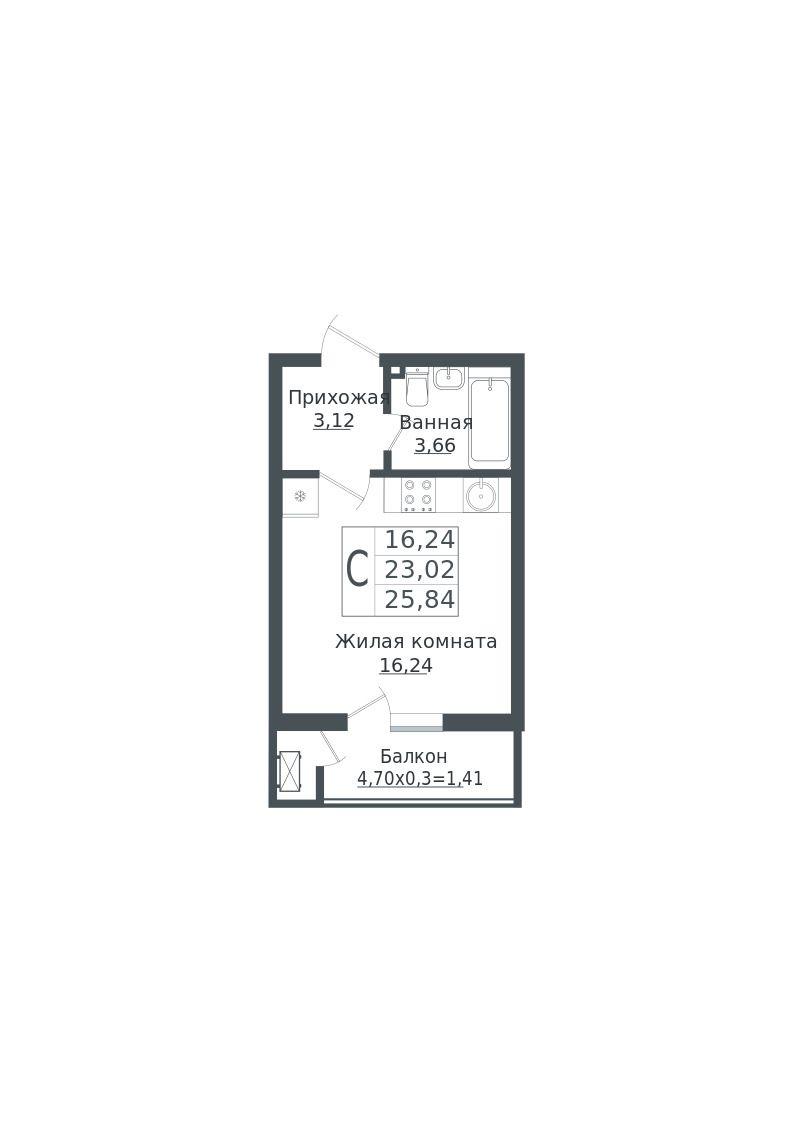 Продается Студия новостройка, 25.84 кв.м., 8/16 эт