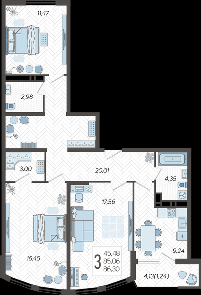 Продается 3-х комн. новостройка, 86.3 кв.м., 5/21 эт