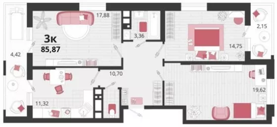Продается 3-х комн. новостройка, 85.87 кв.м., 4/18 эт