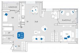 Продается 3-х комн. новостройка, 78.3 кв.м., 23/24 эт