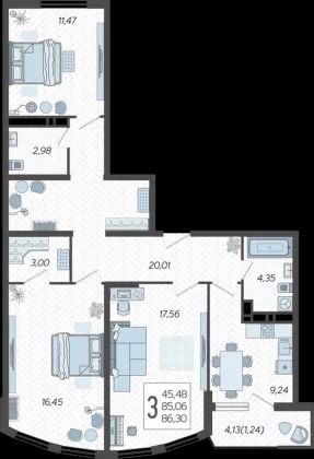 Продается 3-х комн. новостройка, 86.3 кв.м., 3/21 эт