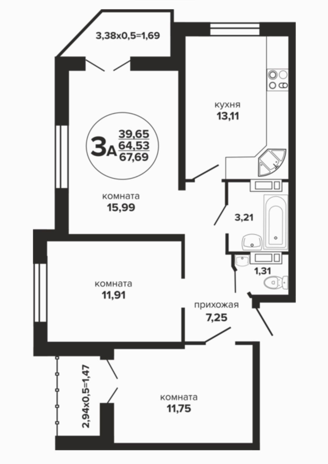 Продается 3-х комн. новостройка, 67.77 кв.м., 11/24 эт