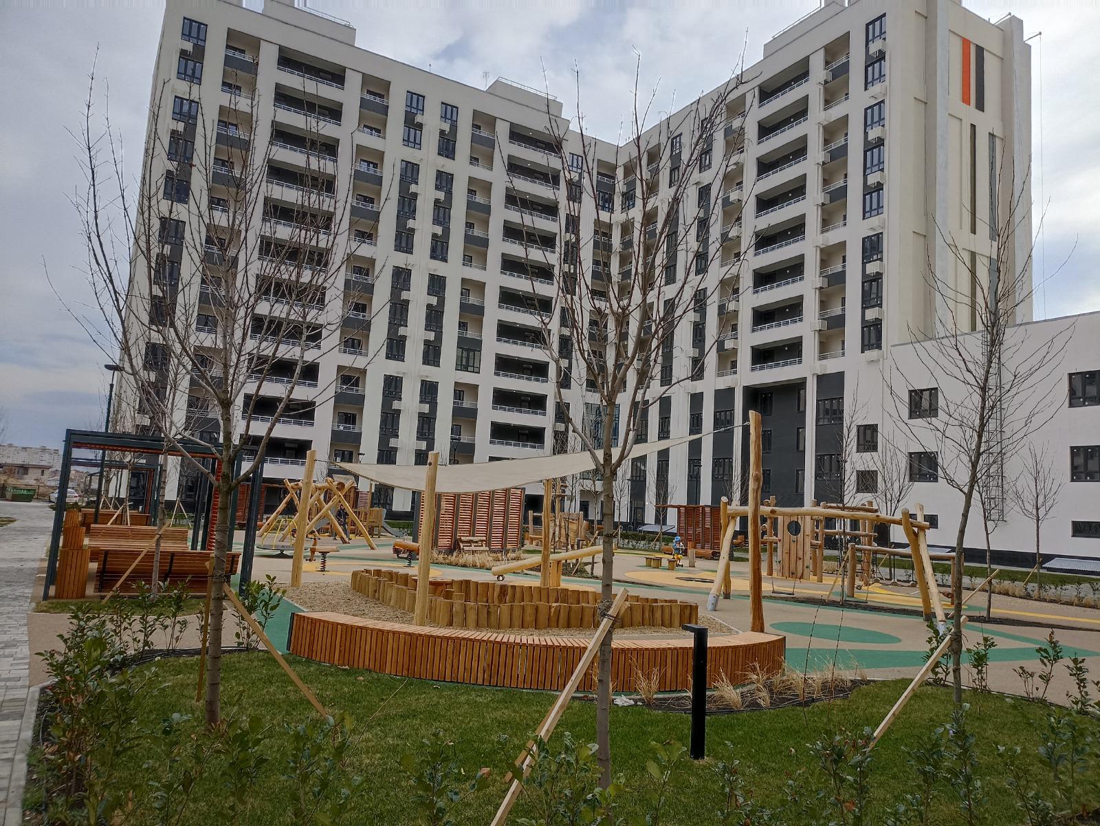 Благоустройство придомовой территории выполнено в формате "инста-двор" с ландшафтным дизайном, экологичными детскими площадками, спортивными площадками, зонами отдыха для взрослых. На первом этаже входной группы будут располагаться просторные холлы с зоной отдыха, колясочные-велосипедные, вход в которые будет осуществляться по магнитному ключу. Также на первом этаже есть уборная, благодаря которой жильцы могут не подниматься на жилой этаж. В домах установлены скоростные, бесшумные лифты, пассажирский и грузопассажирский.