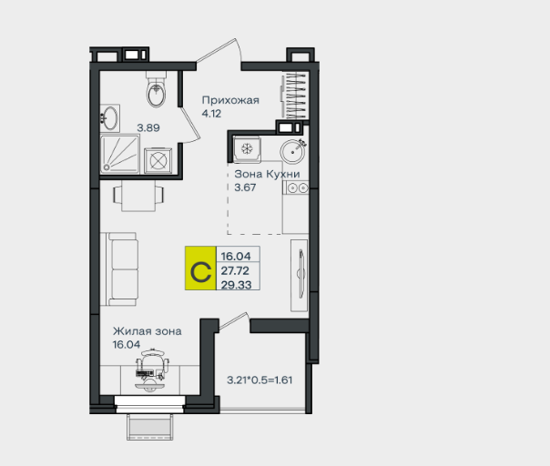Продается Студия новостройка, 30 кв.м., 4/8 эт