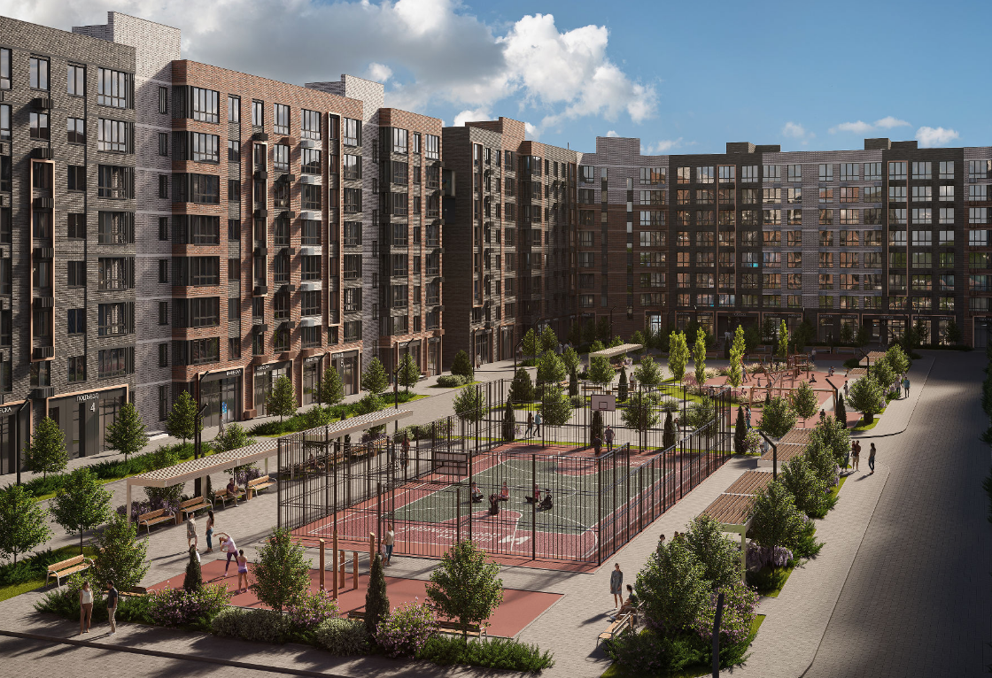 Дворы, свободные от машин, оборудованы детской и спортивной площадками, местами для отдыха.