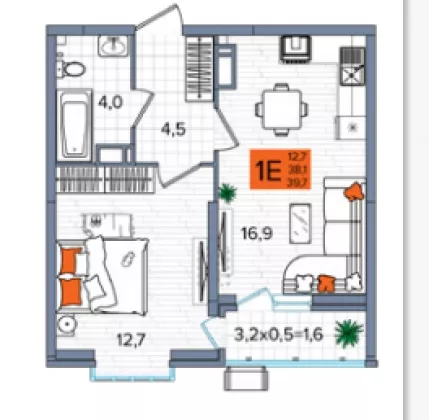 Продается однокомнатная новостройка, 39.7 кв.м., 8/17 эт