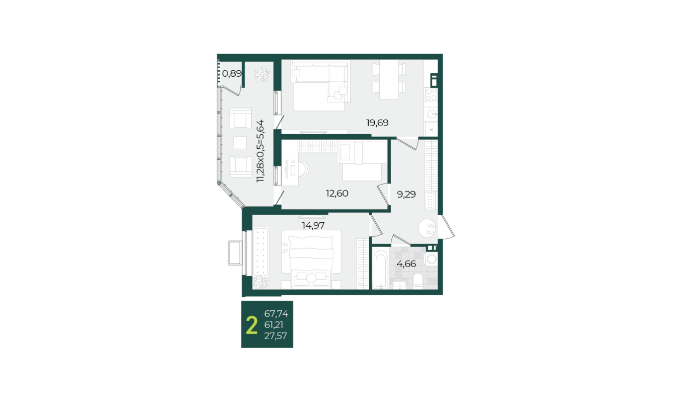Продается 2-х комн. новостройка, 67.74 кв.м., 10/21 эт