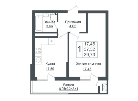 Продается однокомнатная новостройка, 39.73 кв.м., 10/16 эт
