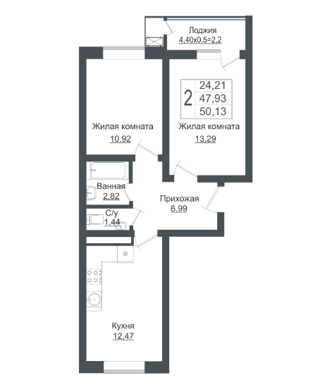 Продается 2-х комн. новостройка, 50.13 кв.м., 7/16 эт
