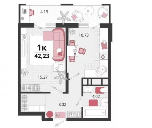 Продается однокомнатная новостройка, 42.23 кв.м., 4/9 эт