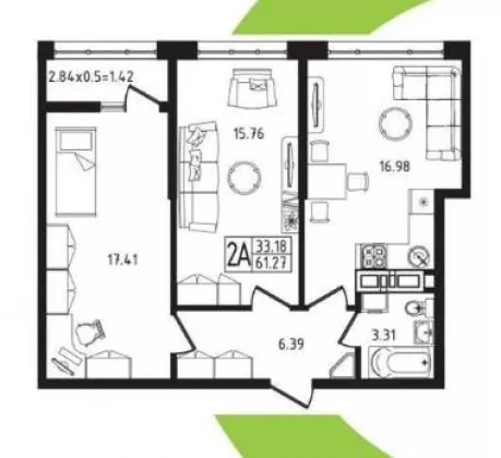 Продается 2-х комн. новостройка, 61.27 кв.м., 9/9 эт
