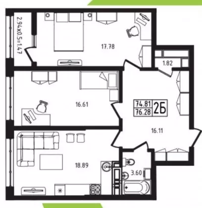 Продается 2-х комн. новостройка, 76.28 кв.м., 7/9 эт