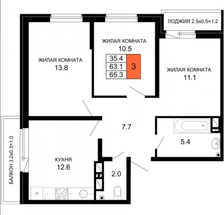Продается 3-х комн. новостройка, 65.3 кв.м., 14/16 эт