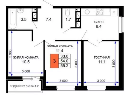 | Площадь, кв.м. | 55 |
