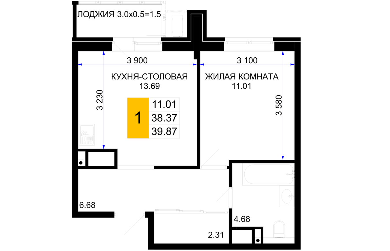 | Жилая площадь | 11.01 |