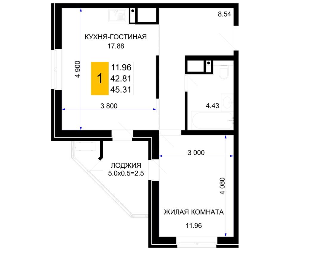 Продается 4-х комн. новостройка, 45.31 кв.м., 4/12 эт