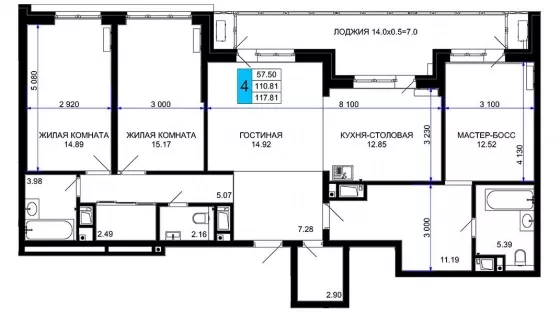 Продается 4-х комн. новостройка, 117 кв.м., 16/16 эт