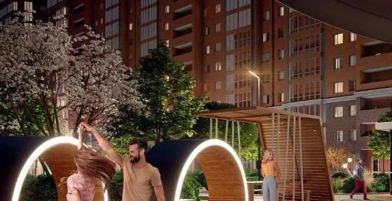 На территории комплекса будет построена лаунж-зона с вечерней площадкой для отдыха жителей и уютного времяпрепровождения.