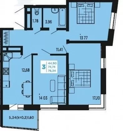 Продается 3-х комн. новостройка, 76 кв.м., 20/24 эт