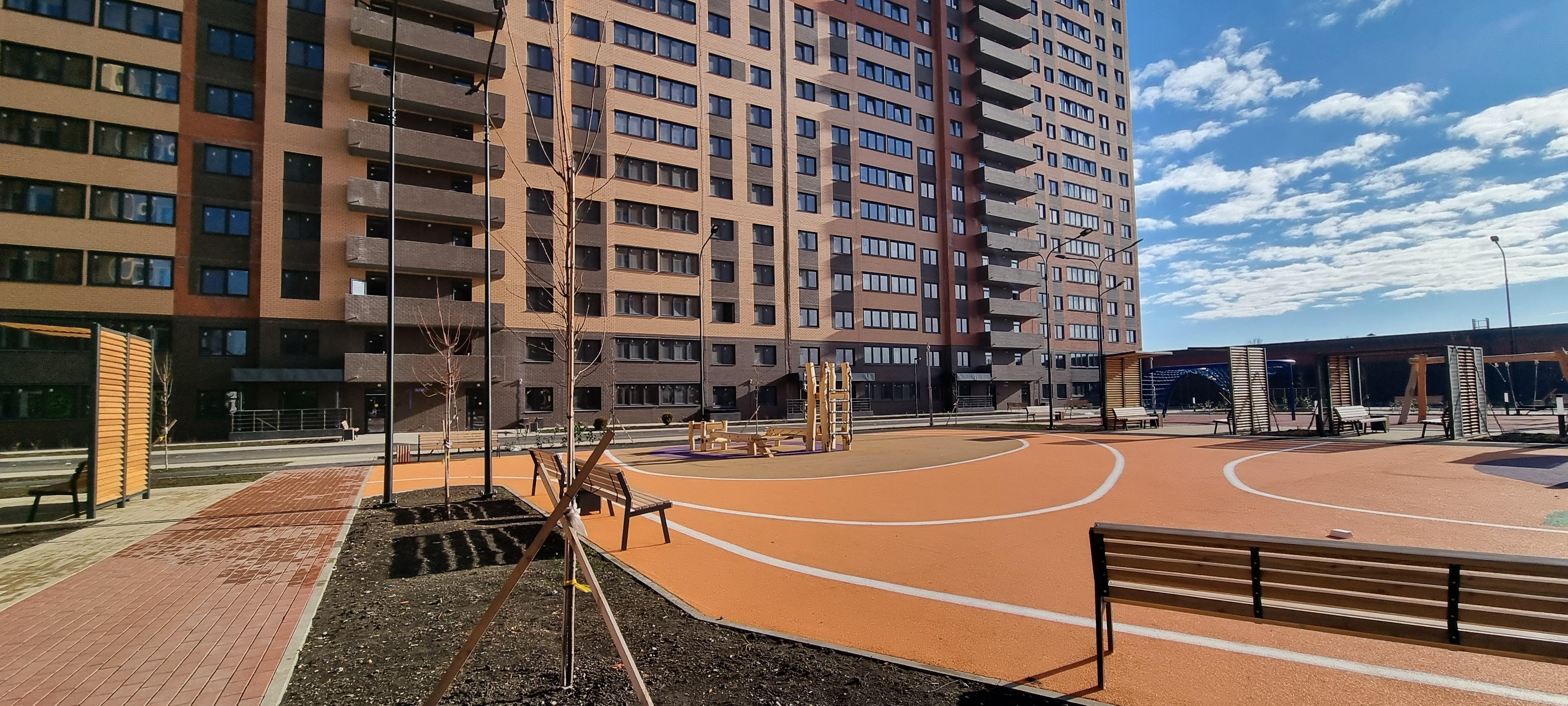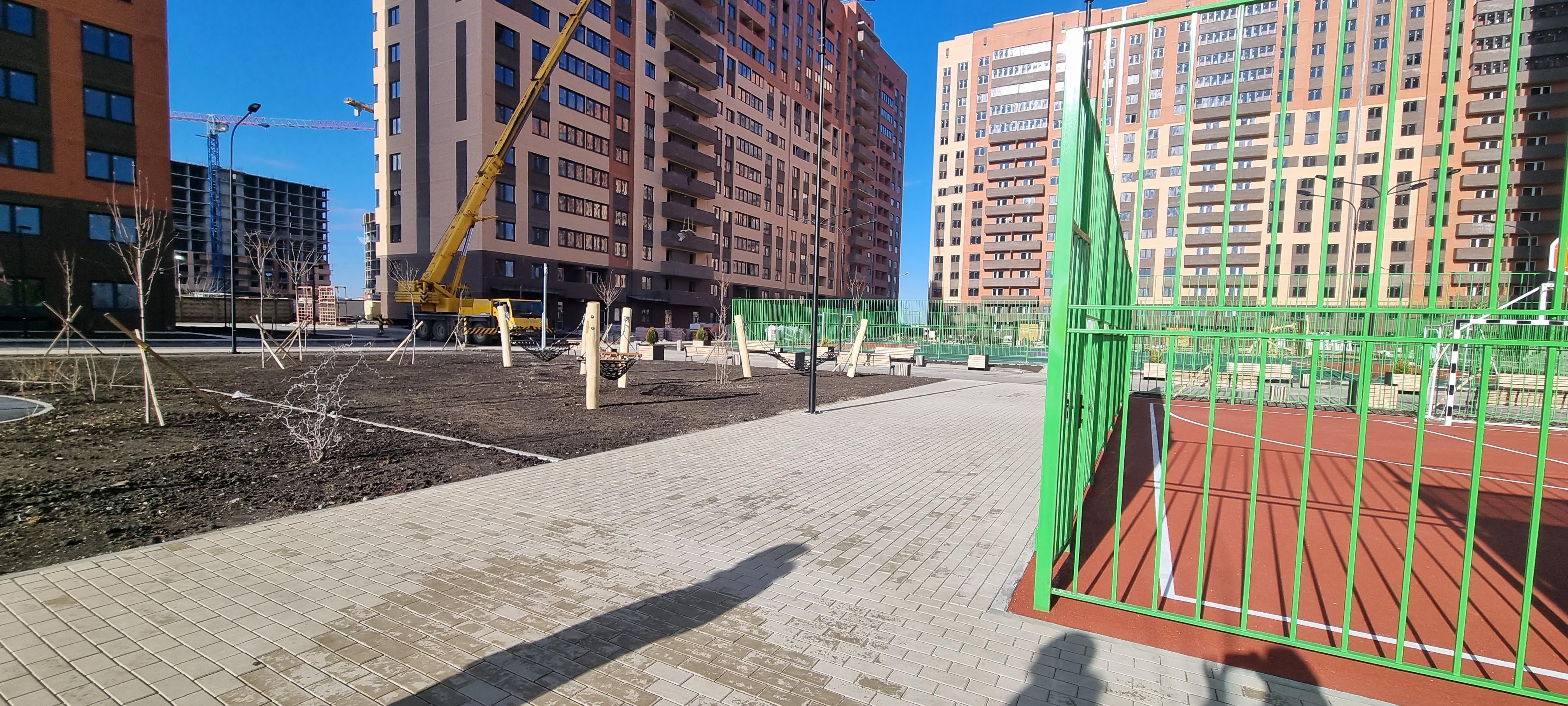 Район перспективный. Экологически чистый. Зоны озеленения, ландштафный дизайн, придомовая территория облагорожена. Много живой зелени, хвойные и лиственные деревья, зеленые газоны, цветы и ягоды, черная и красная смородина рядом с каждым подъездом.