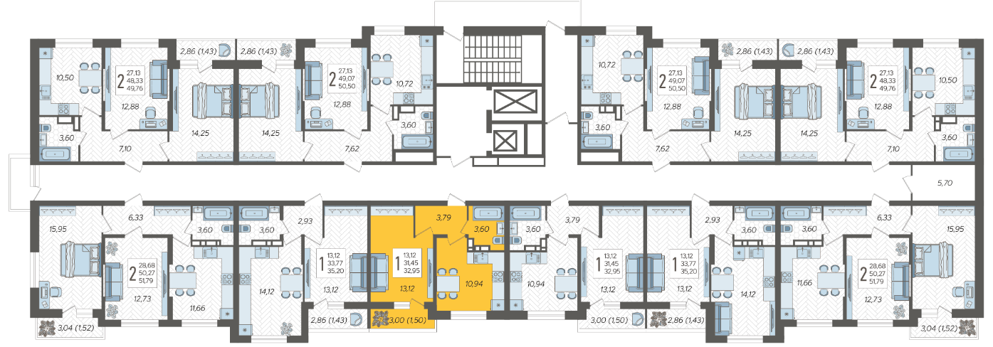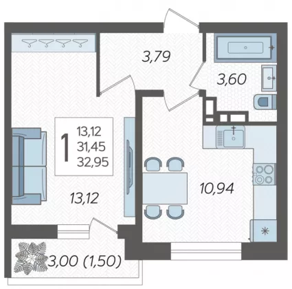 Продается однокомнатная новостройка, 32.95 кв.м., 14/16 эт