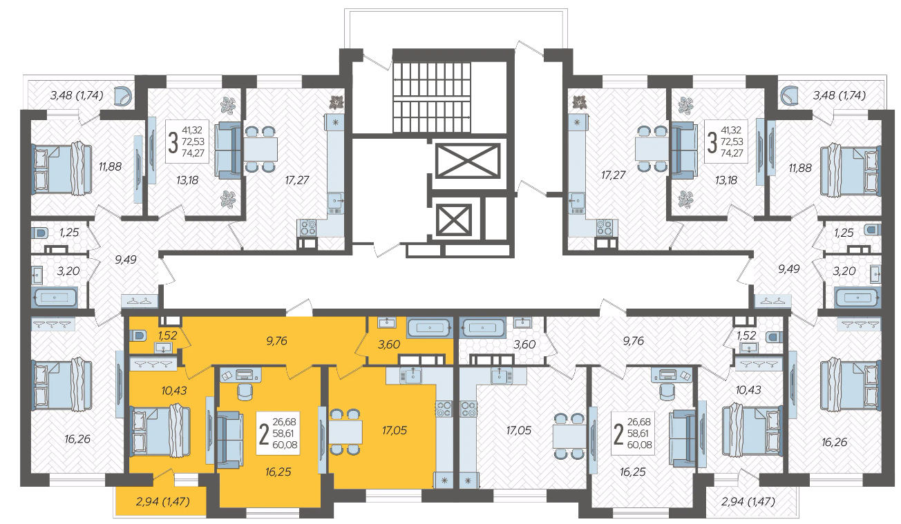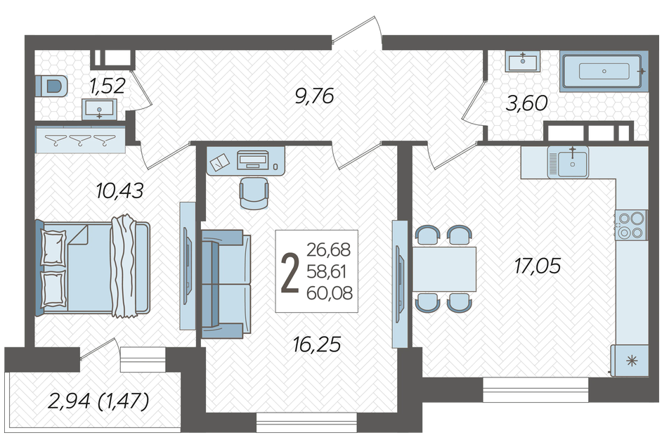 Продается 2-х комн. новостройка, 60.08 кв.м., 12/19 эт