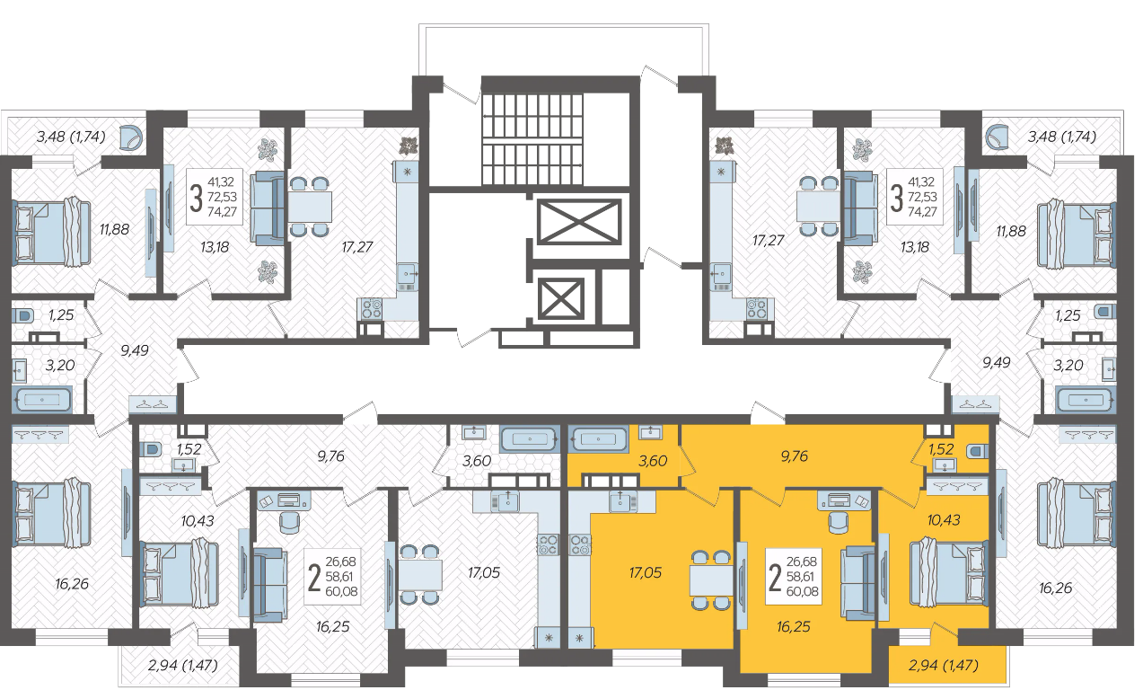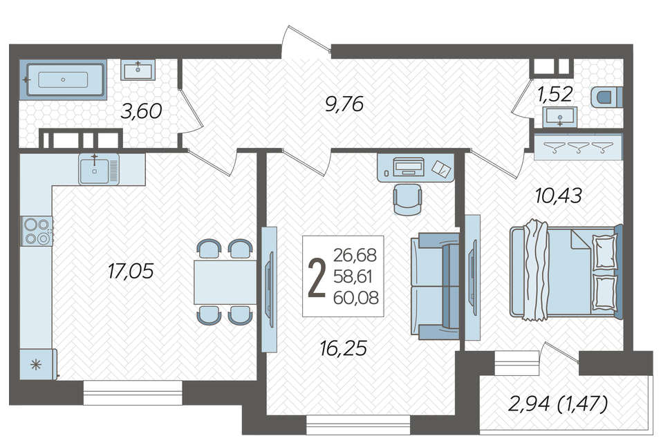 Продается 2-х комн. новостройка, 60.08 кв.м., 16/19 эт