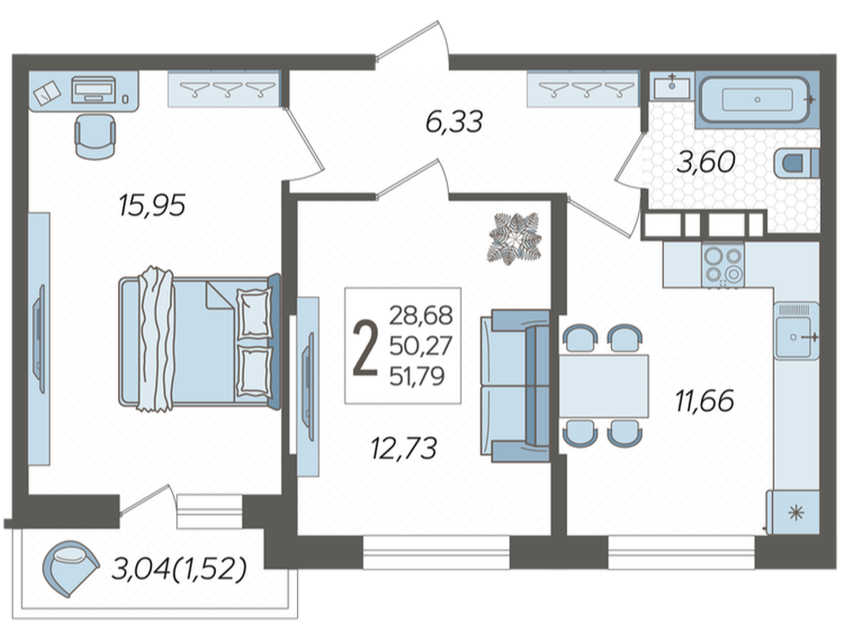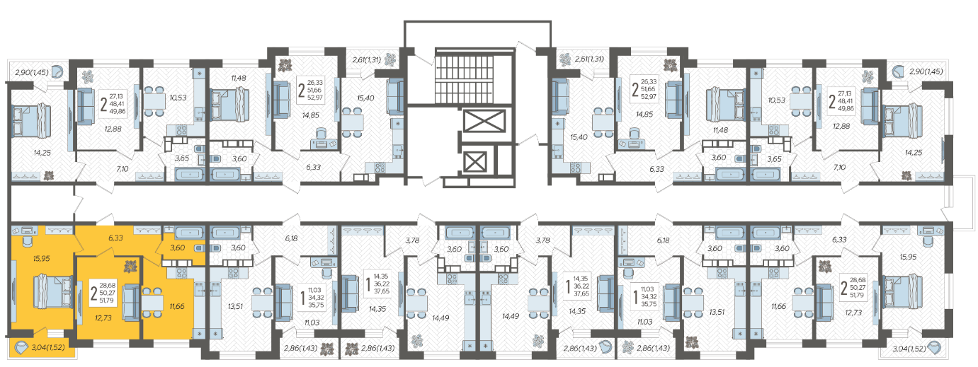 Продается 2-х комн. новостройка, 51.79 кв.м., 12/19 эт