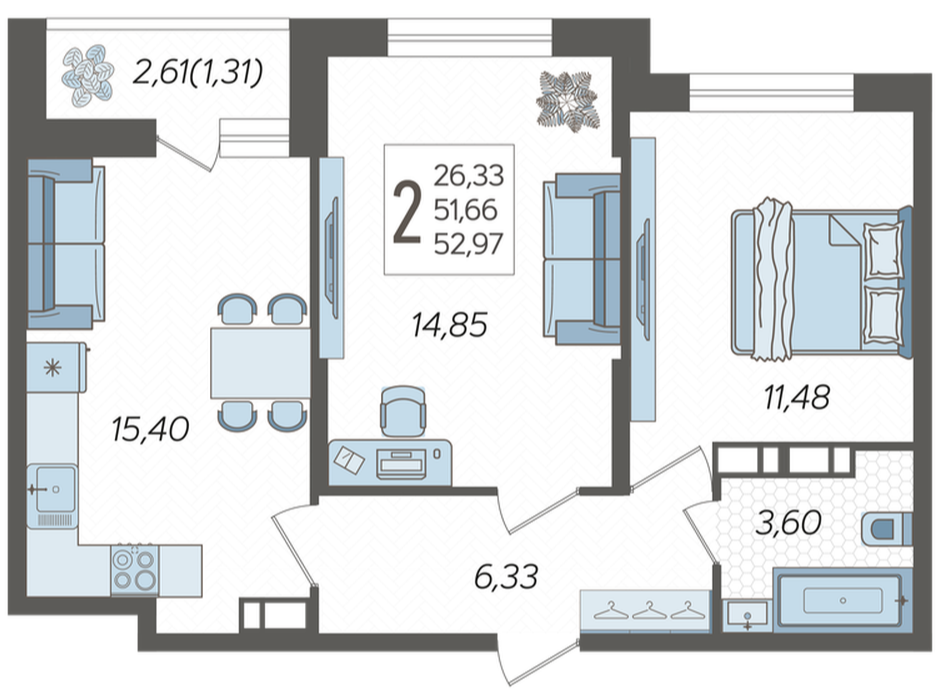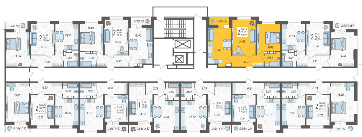 Продается 2-х комн. новостройка, 52.97 кв.м., 18/19 эт