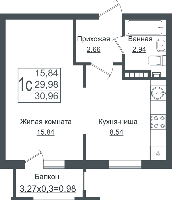 Продается Студия новостройка, 30.96 кв.м., 2/3 эт