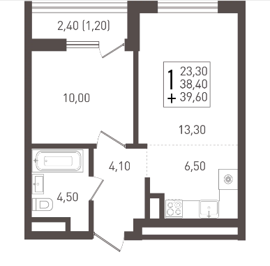 Продается однокомнатная новостройка, 39.6 кв.м., 2/8 эт