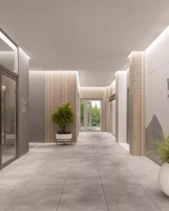 Закрытая территория, двор без машин, детские и спортивные площадки, зоны отдыха, прогулочные аллеи, фонтан, зоны коворкинга, безбарьерная среда, свой детский сад с бассейном.