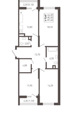 3к квартира улучшенной планировки в современном комплексе класса комфорт+