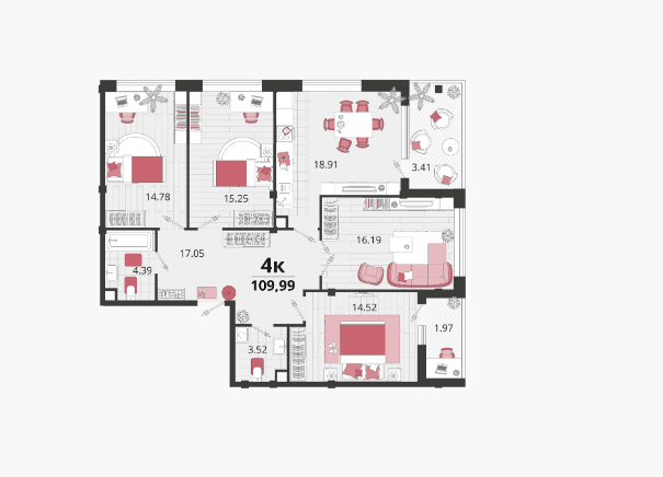В избранное четырехкомнатная квартира