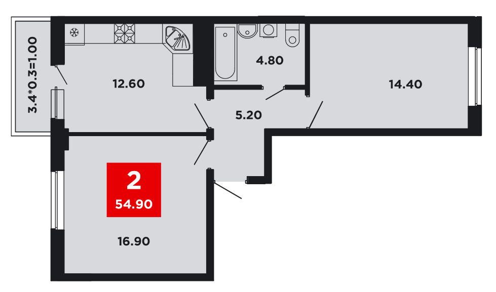 | Площадь, кв.м. | 54.9 |