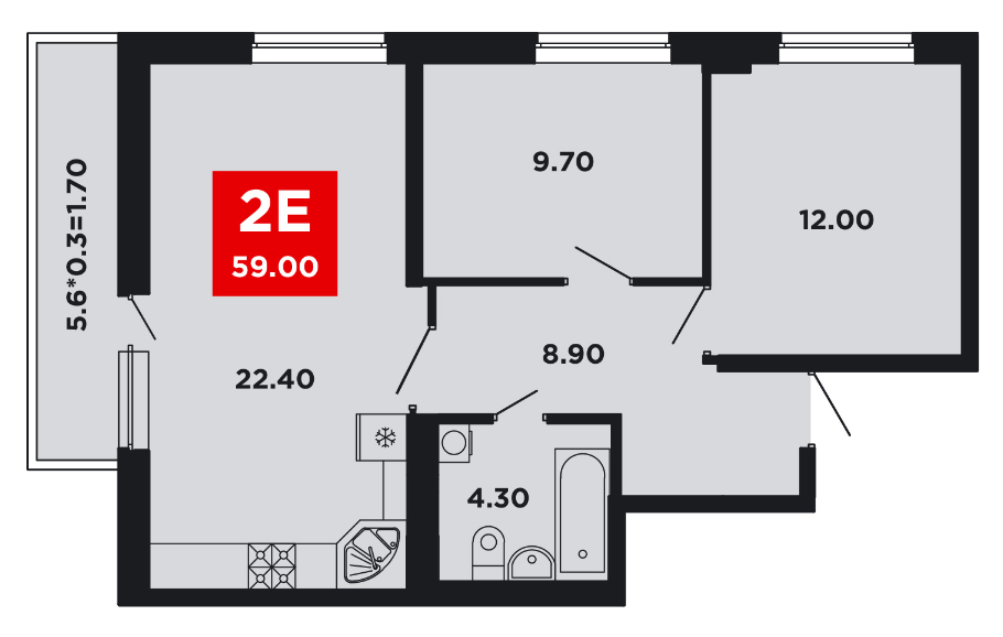 Продается 2-х комн. новостройка, 59 кв.м., 5/9 эт
