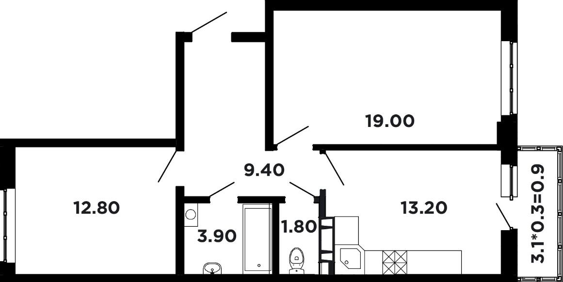Продается 2-х комн. новостройка, 60.9 кв.м., 14/20 эт