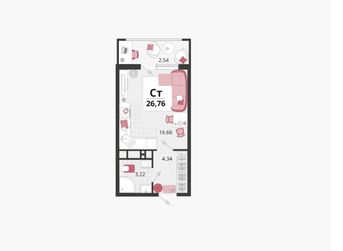 Продается Студия новостройка, 27 кв.м., 13/18 эт