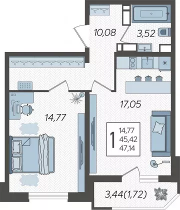В избранное Однокомнатная квартира