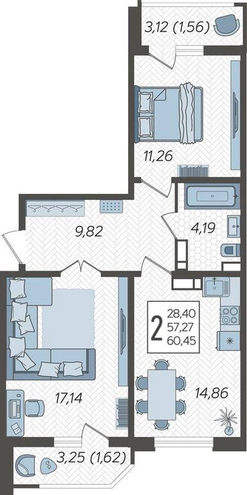 Продается 2-х комн. новостройка, 64 кв.м., 14/23 эт