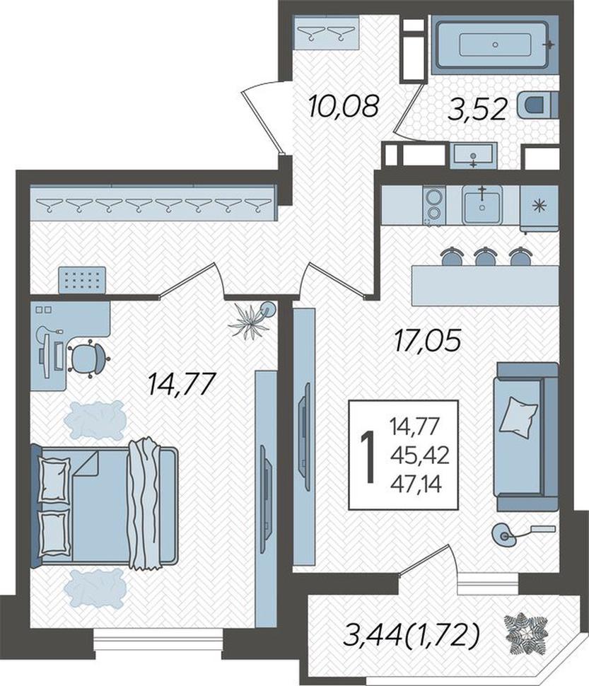 Продается однокомнатная новостройка, 49 кв.м., 7/23 эт