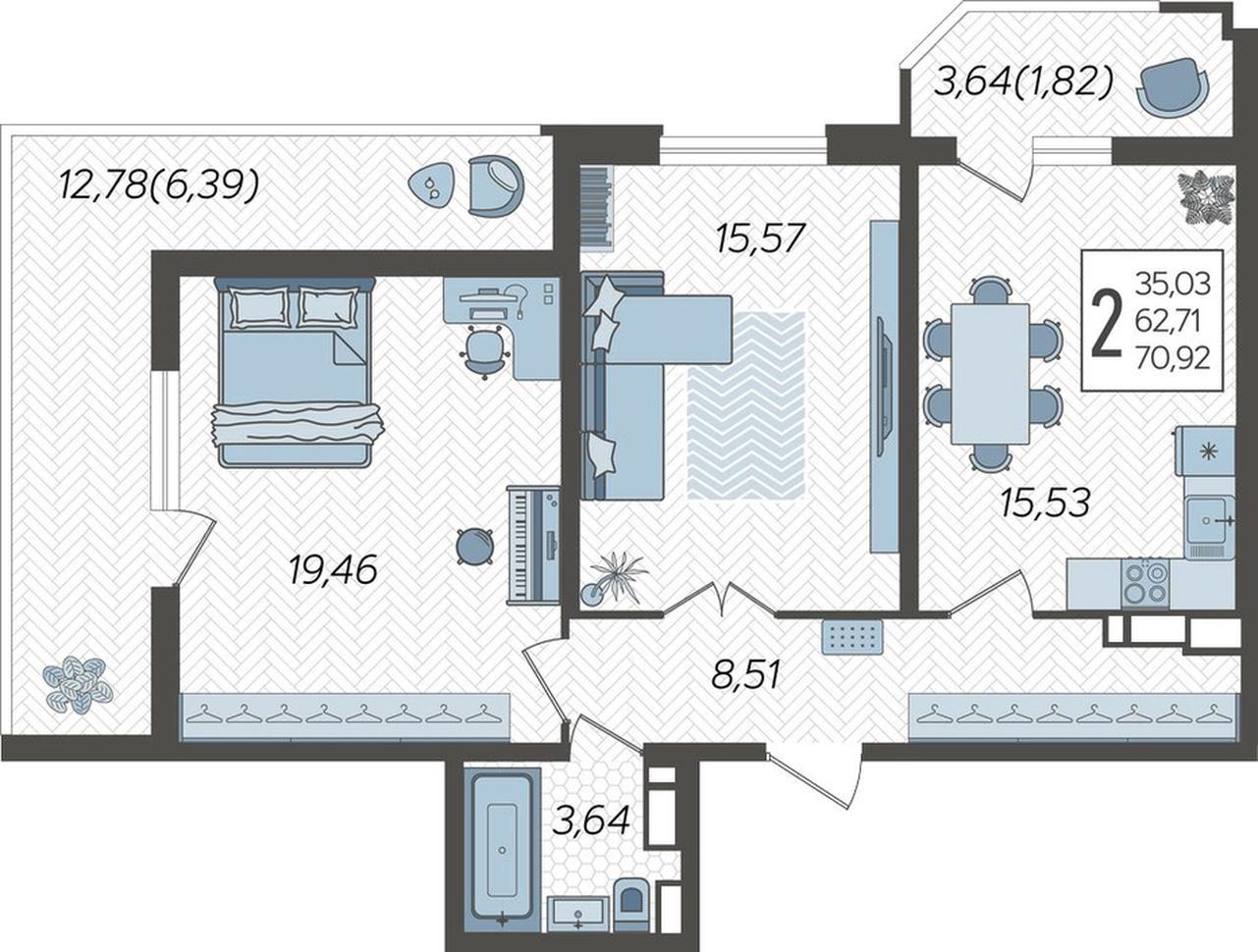 В избранное Двухкомнатная квартира